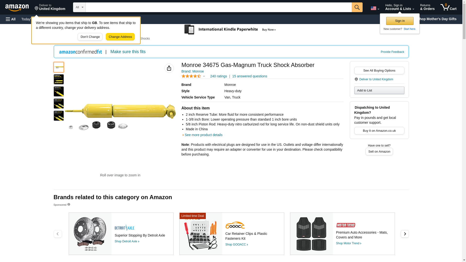 | Manufacturer | Monroe Shocks & Struts |