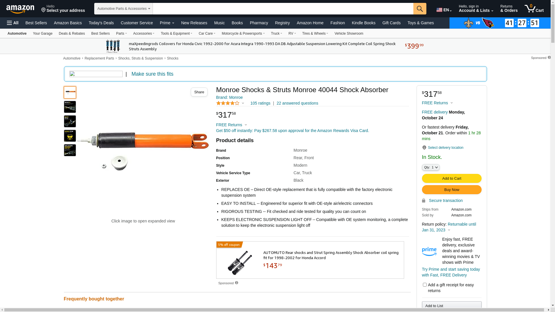 ![]() StockWise Auto | MON-40044 | 1 | 1 | 1 @ $289.88 | |
