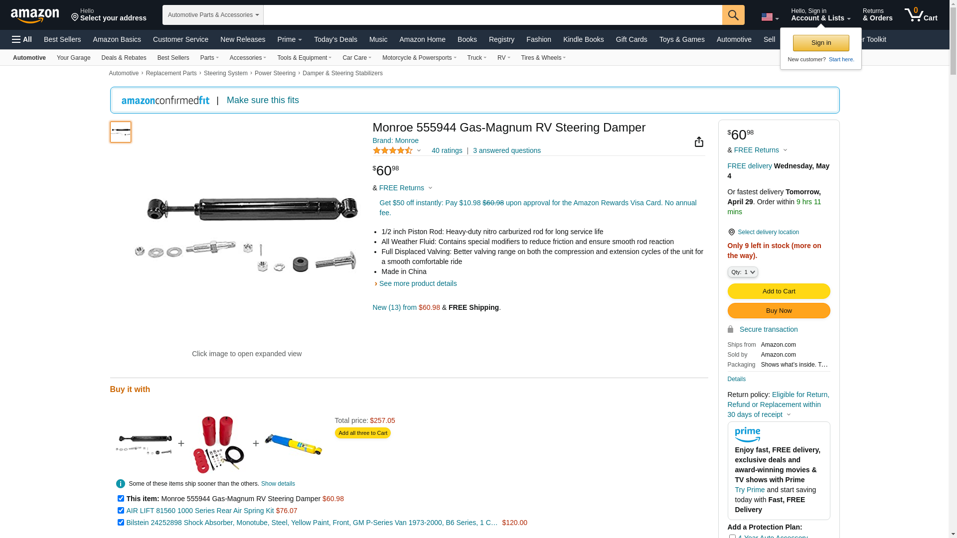 Monroe Shocks & Struts Magnum RV 555944 Steering Damper