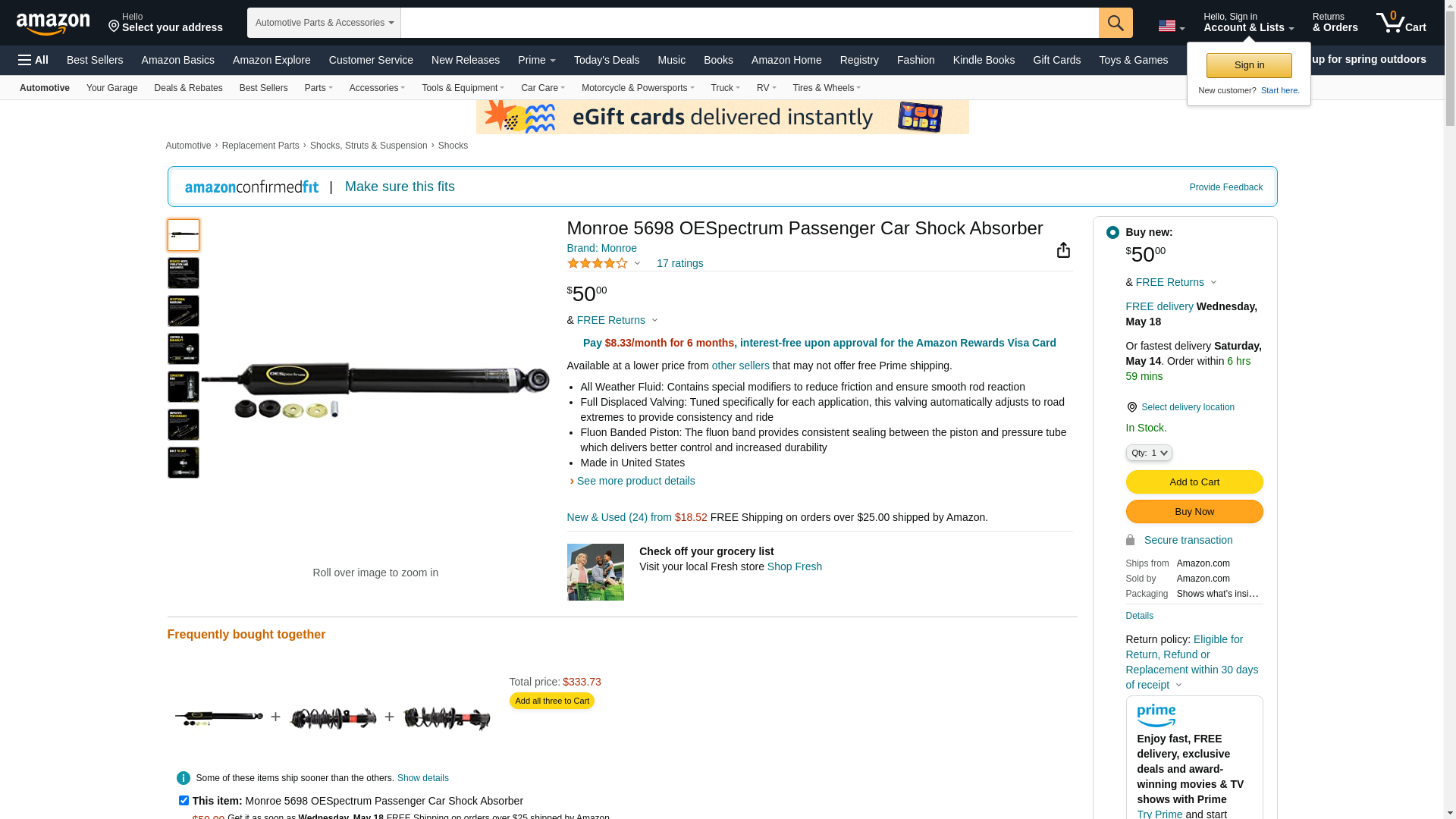 | Manufacturer | Monroe Shocks & Struts |
