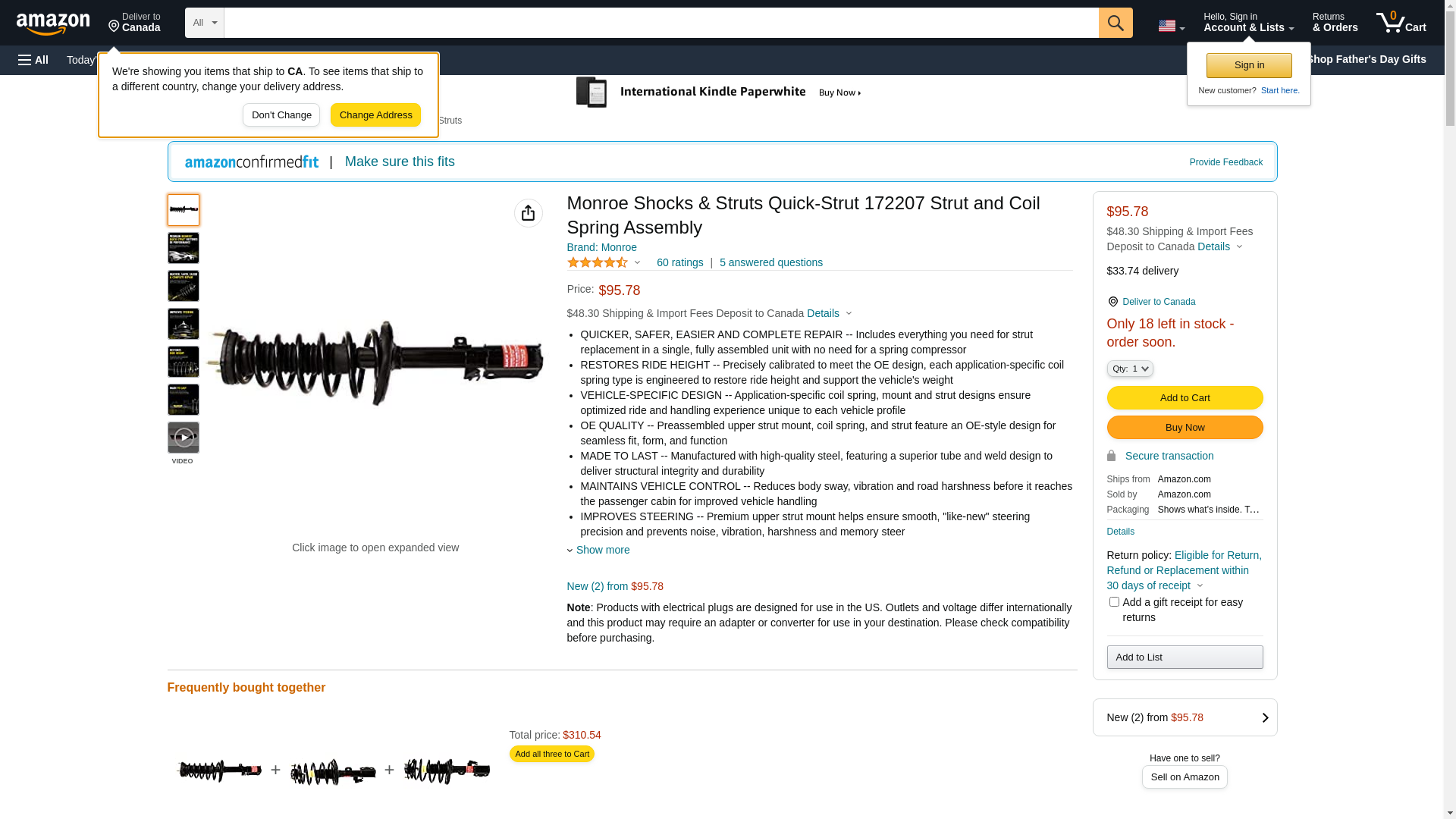 Monroe Quick-Strut 172207 Suspension Strut and Coil Spring Assembly for Toyota Camry