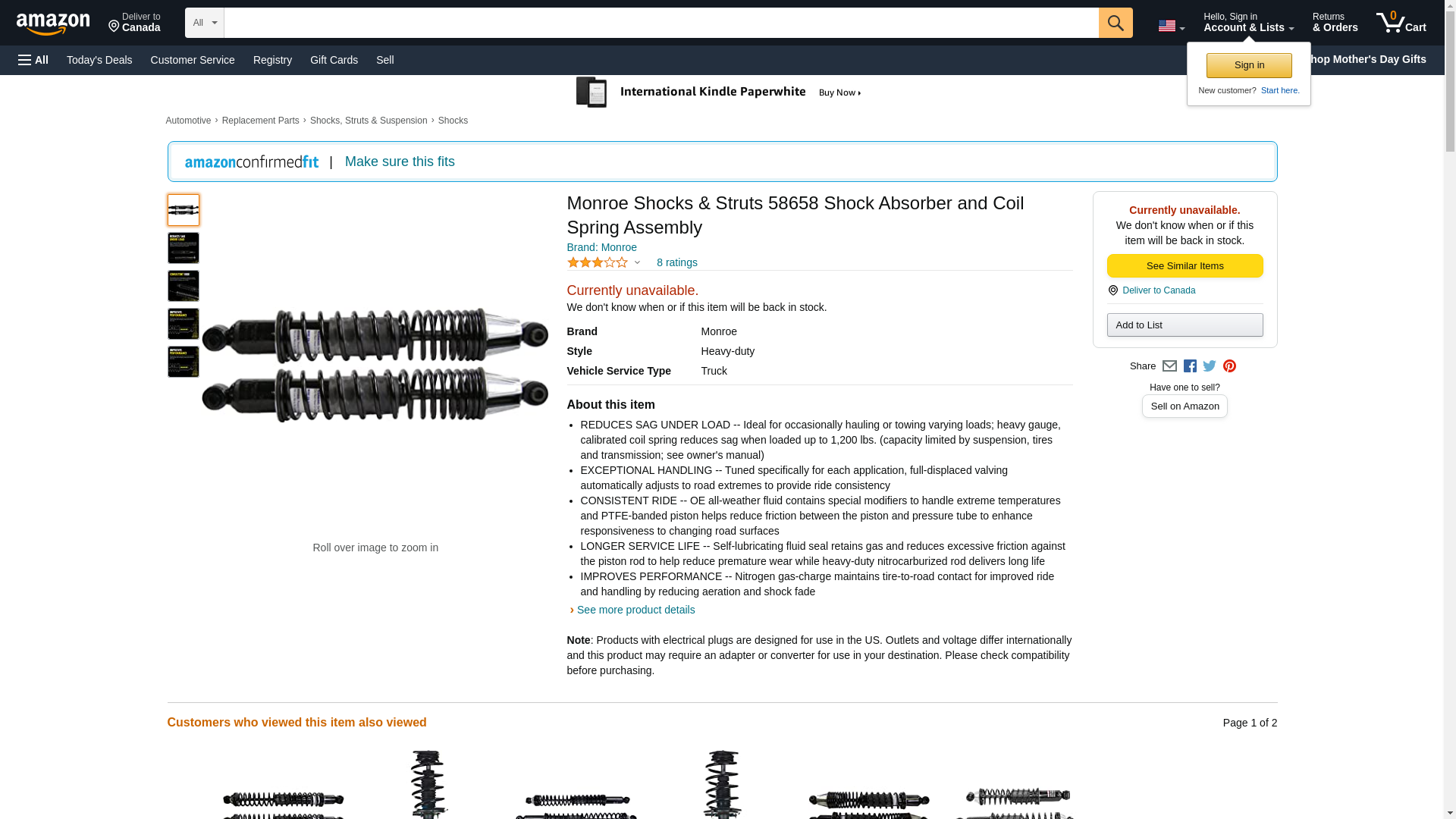 | Manufacturer | Monroe Shocks & Struts |
