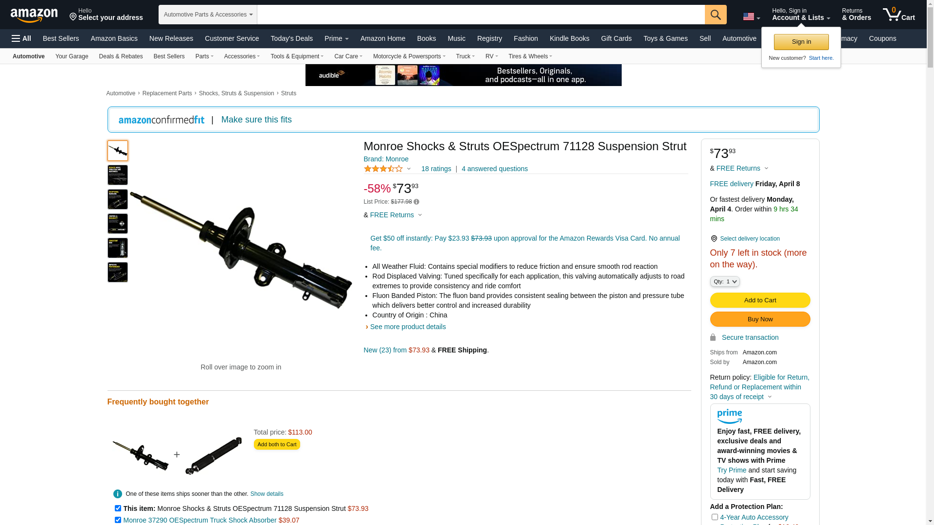 - BUY WITH CONFIDENCE -- Comes with Monroe's Limited Lifetime Warranty and exclusive Feel the Difference Guarantee