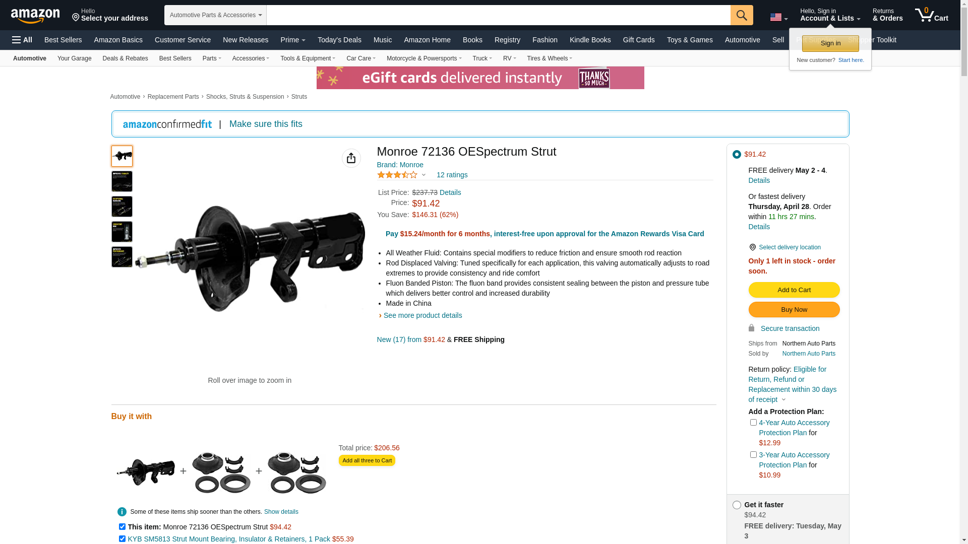 ![]() StockWise Auto | TS-72136 | 1 | 28 | 1 | 1 @ $81.08 |