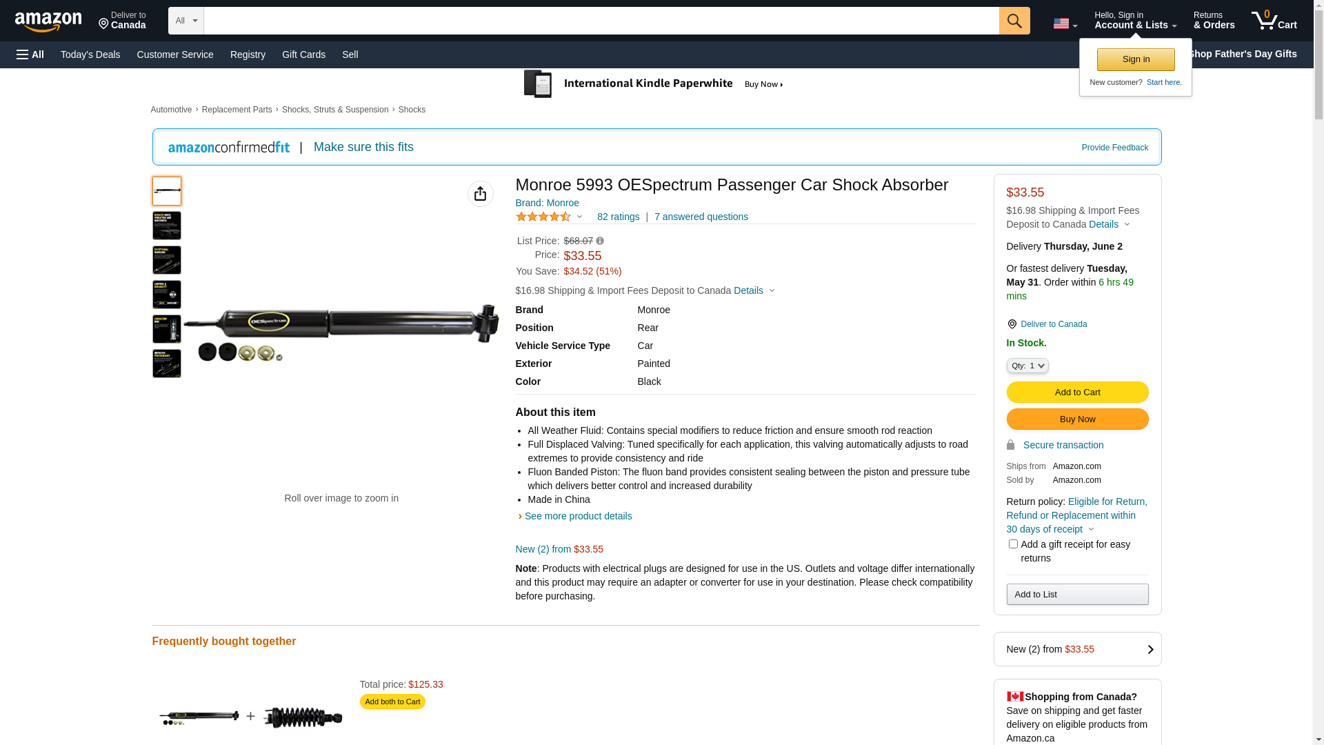 - BUY WITH CONFIDENCE -- Comes with Monroe's Limited Lifetime Warranty and exclusive Feel the Difference Guarantee
