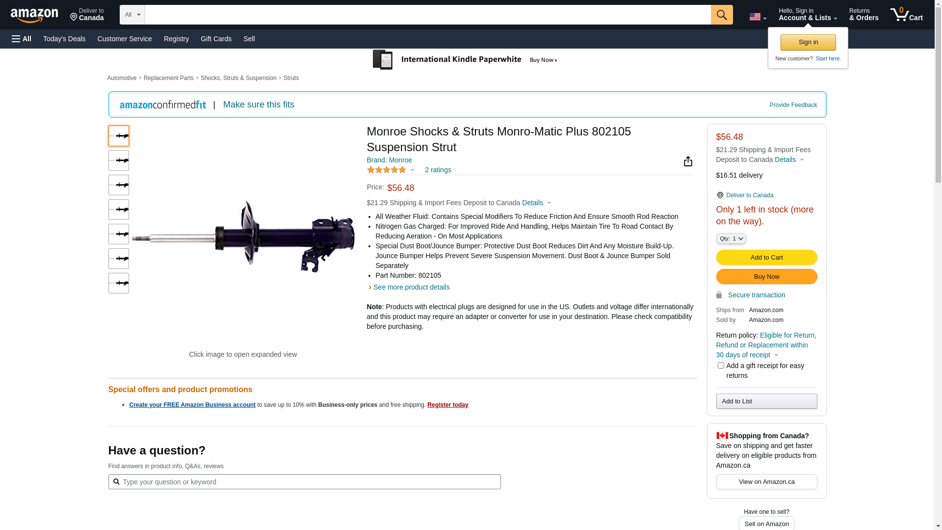 Ride Control/Monroe 802105 Auto Part