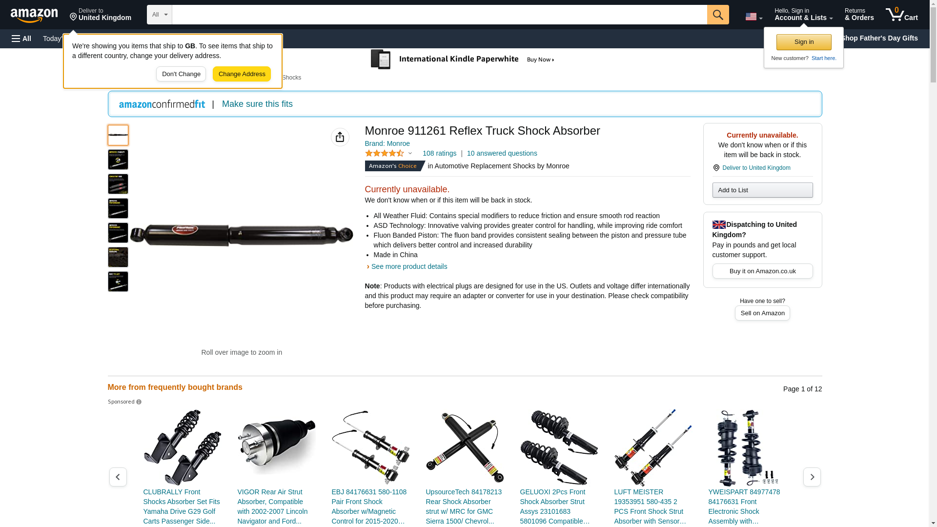 | Manufacturer | Monroe Shocks & Struts |