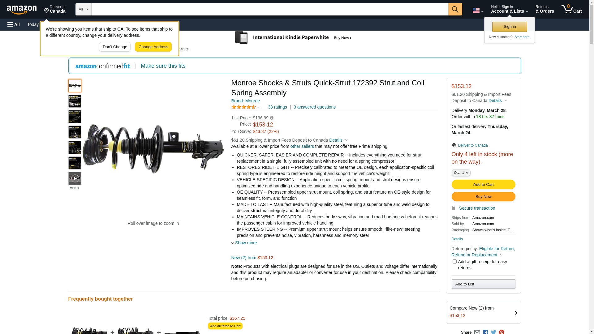 Monroe Quick-Strut 172392 Suspension Strut and Coil Spring Assembly for Nissan Altima