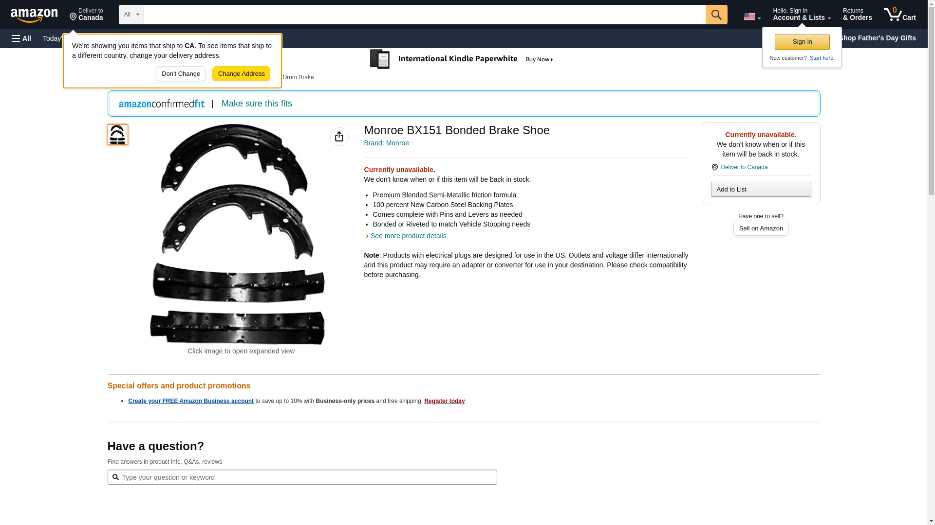 Monroe BX151 Bonded Brake Shoe