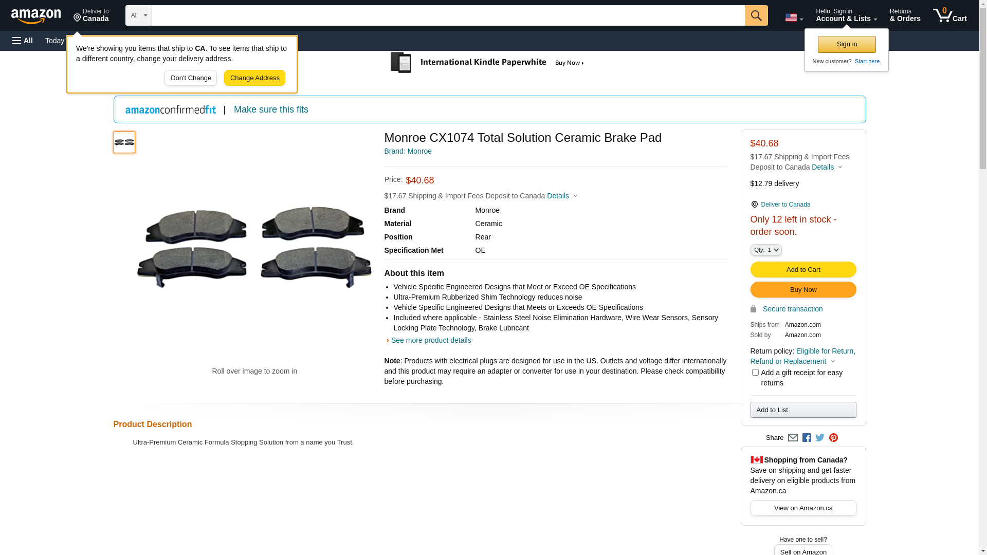 Monroe Brakes CX1074 Disc Brake Pad