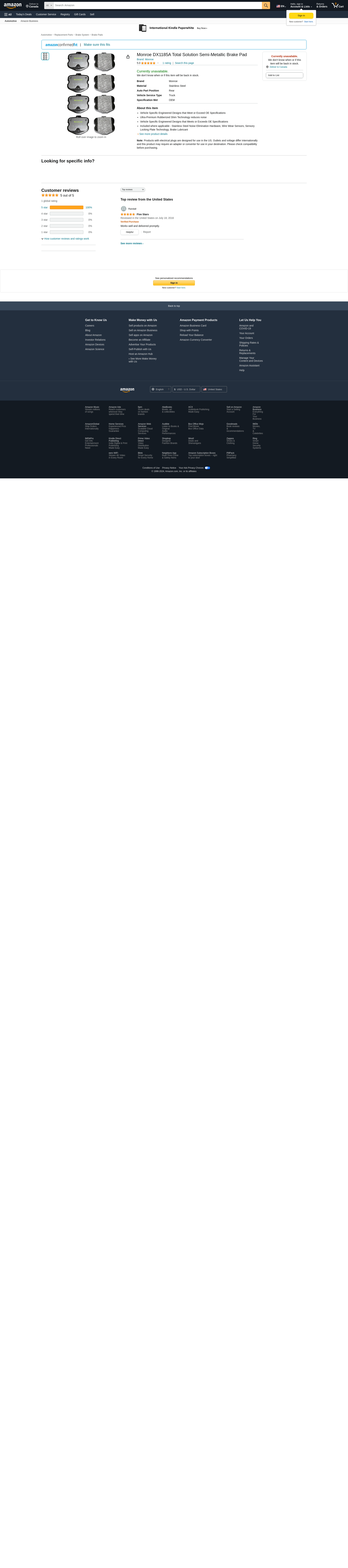 Monroe DX1185A Total Solution Semi-Metallic Brake Pad