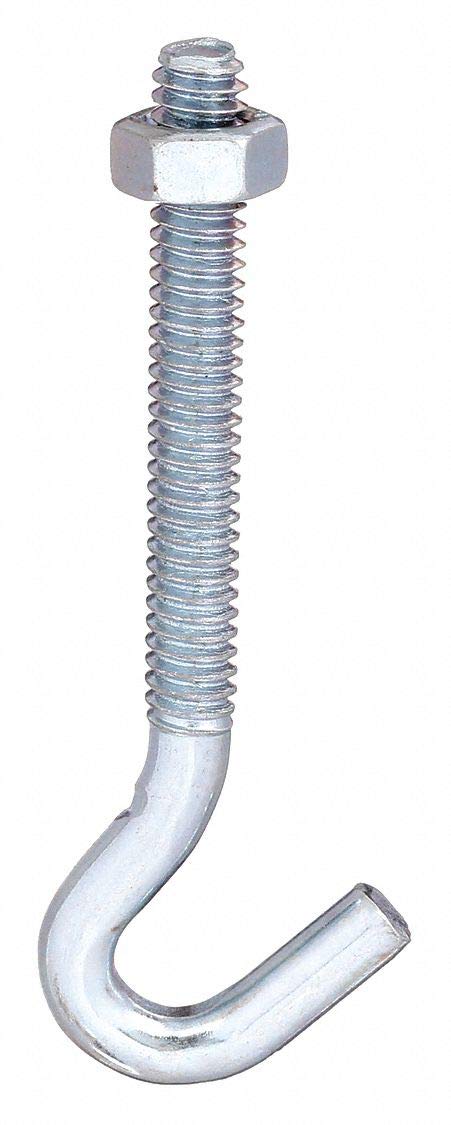'Utility Hook, Fastening Method Screw In, Points Per Hook 1, Number of Hooks 1, Basic Hook Material Steel, Hook Finish Zinc, Hook Height 3-3/4 In., Hook Base Width 1-1/2 In., Projection 1-3/8 In., Thread Size 3/8-16, Thread Length 3-3/4 In., Door Thickness 3-3/4 In., Hardware Included, Mounting Screw-In, Overall Length 1-3/8 In., Package Quantity 10'