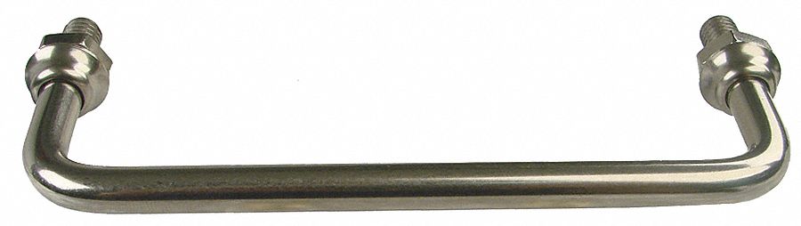 - Price For: Each Load Rated (Y/N): N Item: Pull Handle Mounting Type: Threaded Studs Material: 303 Stainless Steel Color: Natural Finish: Polished Projection: 1-3/16" Hardware: Included Screw Size: 5/16-18 Grip Dia.: 5/16" Mounting Hole Center to Center: 5" Thread Depth: 15/16" Country of Origin (subject to change): China