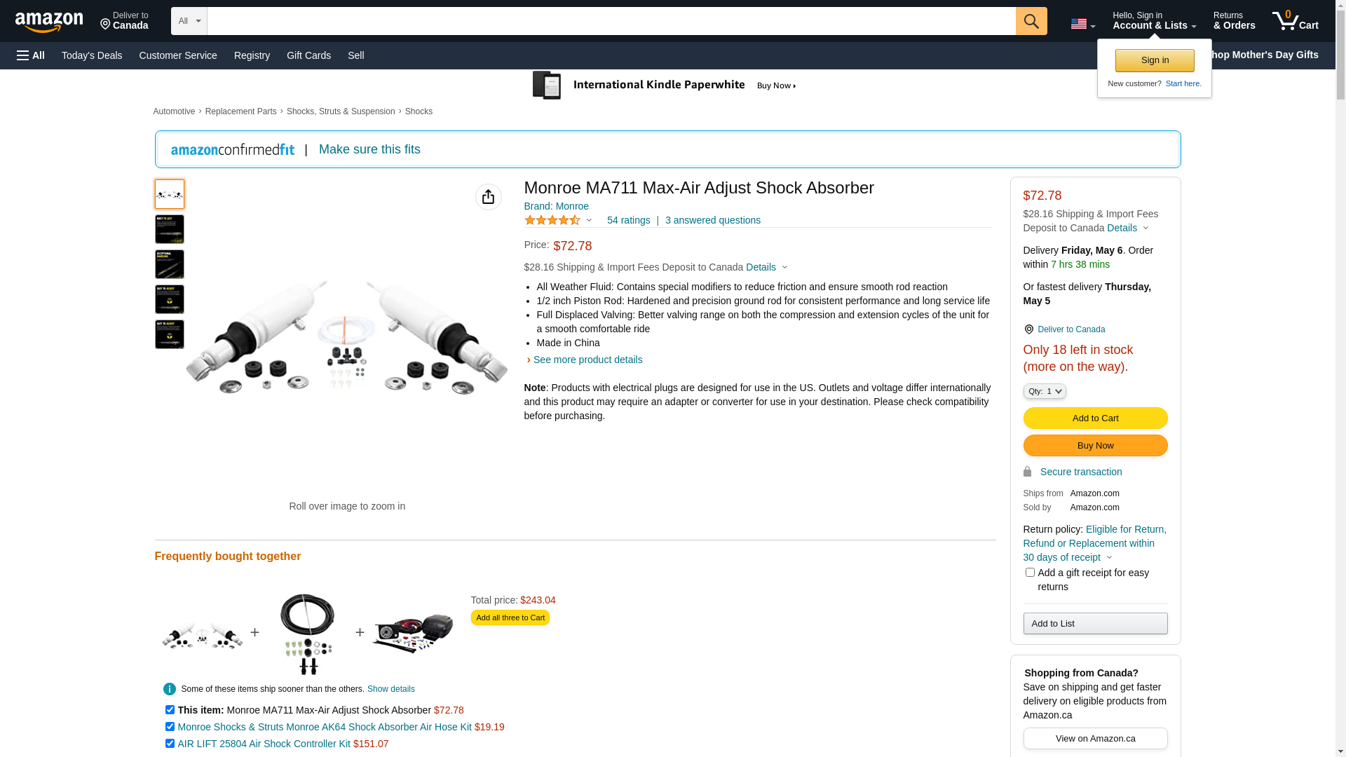 ![]() StockWise Auto | MON-MA711 | 1 | 1 | 1 @ $61.41 | |