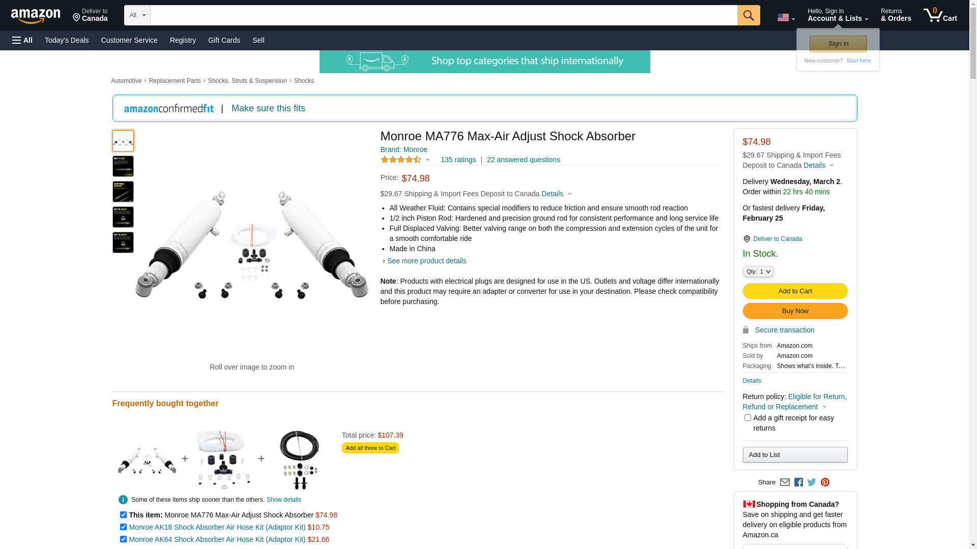 Monroe Shocks & Struts Max-Air MA776 Air Shock Absorber, Pack of 2