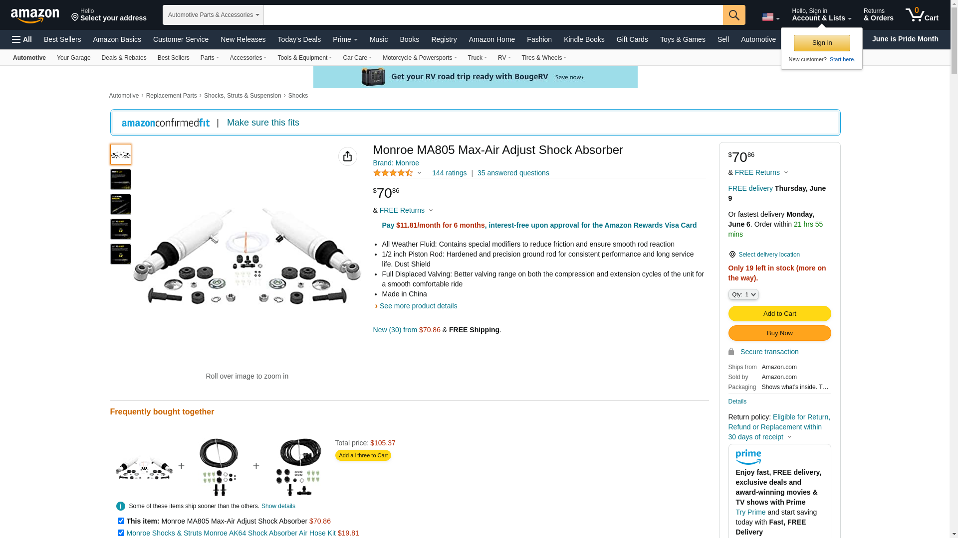 ![]() StockWise Auto | MON-MA805 | 1 | 1 | 1 @ $65.20 | |