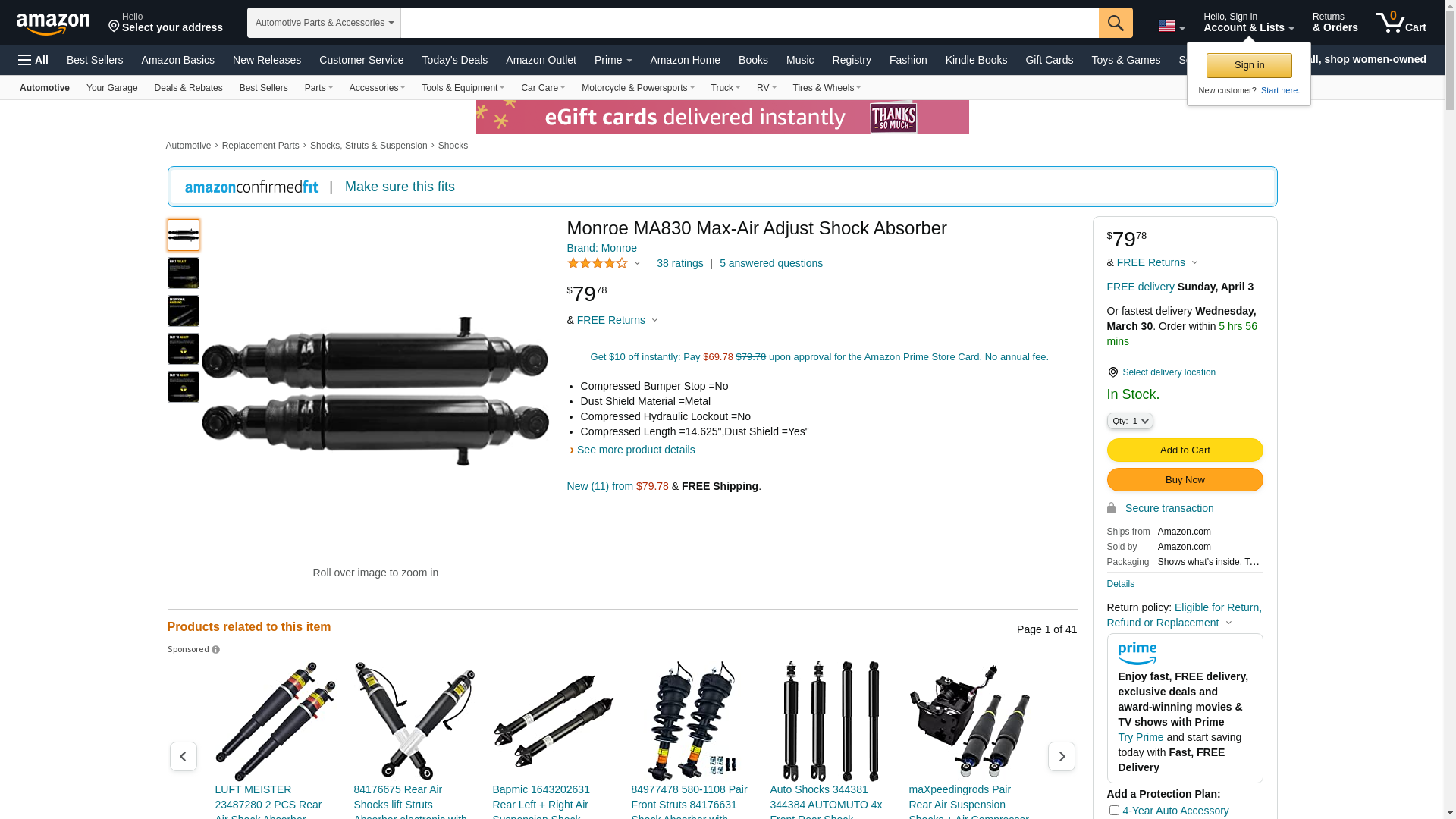 ![]() StockWise Auto | MON-MA830 | 1 | 1 | 1 @ $64.43 | |