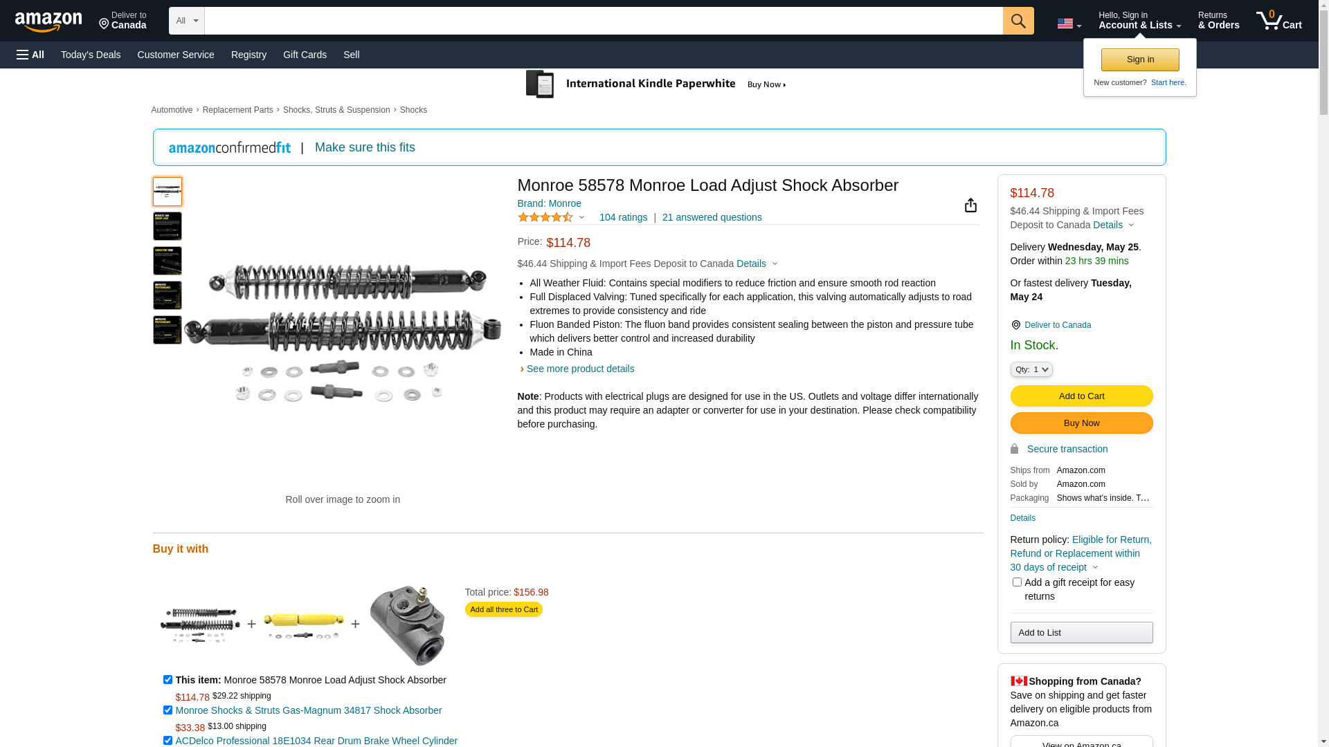 ![]() StockWise Auto | MON-58578 | 1 | 1 | 1 @ $94.54 | |