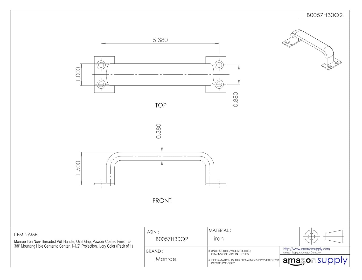 Monroe Iron Non-Threaded Pull Handle, Oval Grip, Powder Coated Finish, 5-3/8" Mounting Hole Center to Center, 1-1/2" Projection, Ivory Color (Pack of 1)