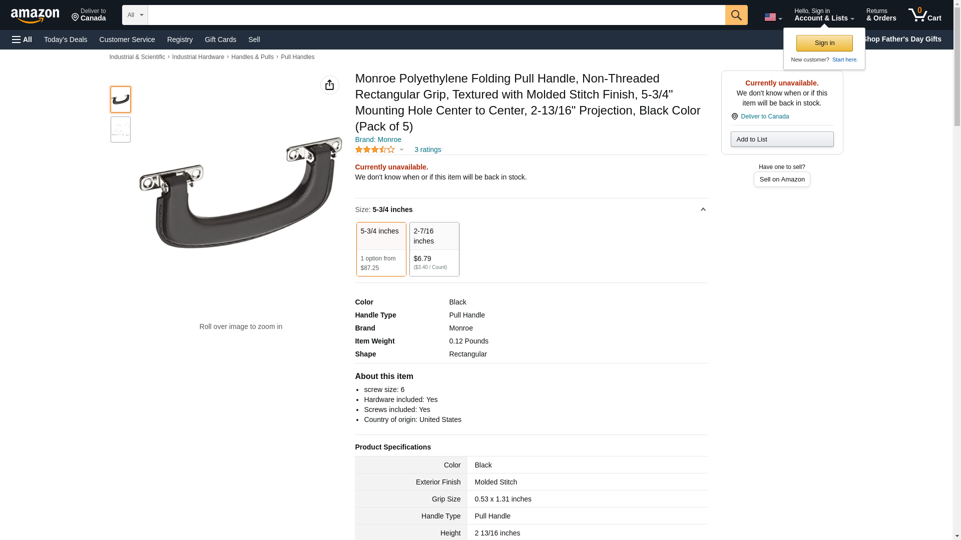 Monroe Pmp Polyethylene Folding Pull Handle with Powder Coated Finish, Black; Hardware Included - 1 Each