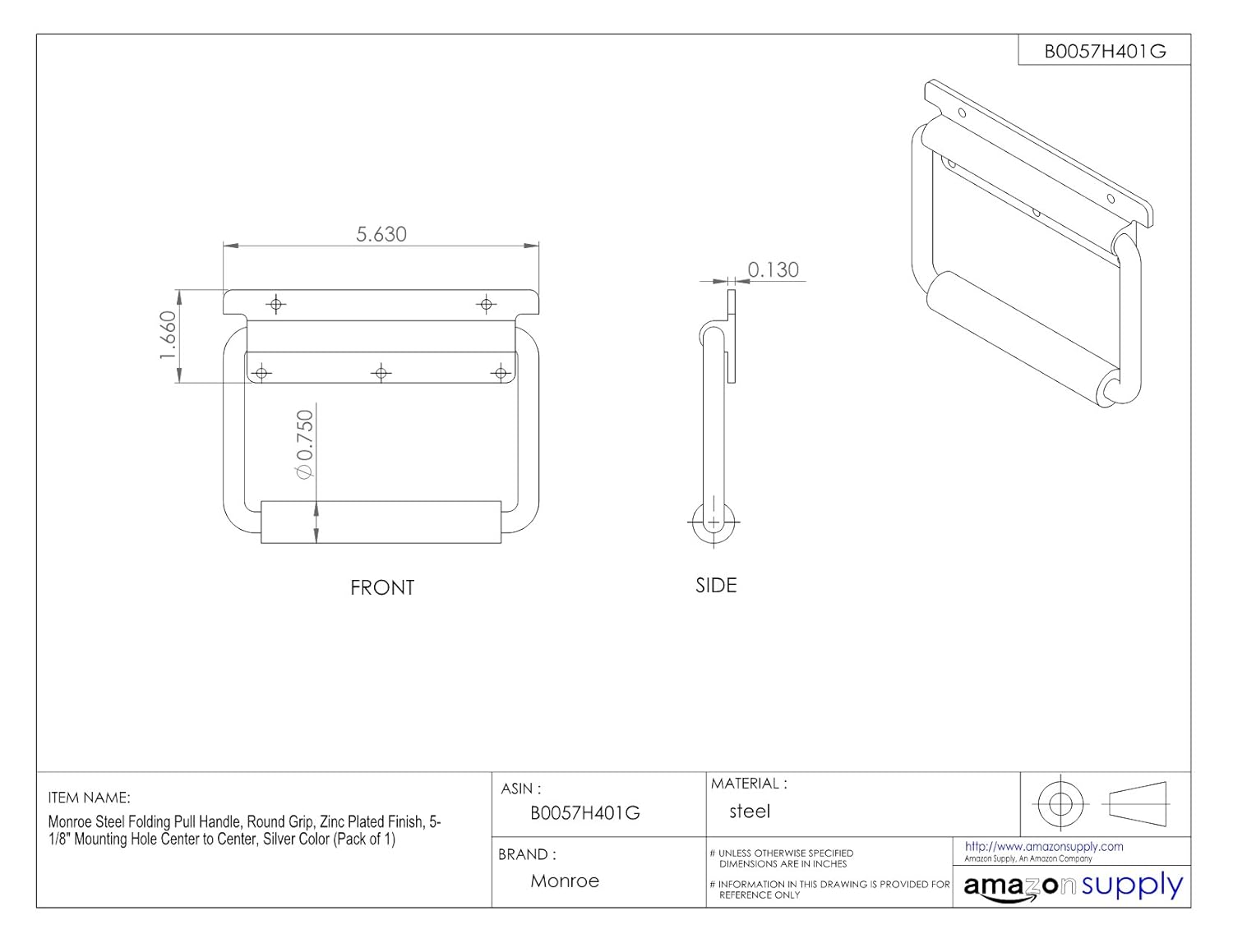 Monroe Steel Folding Pull Handle, Round Grip, Zinc Plated Finish, 5-1/8" Mounting Hole Center to Center, Silver Color (Pack of 1)