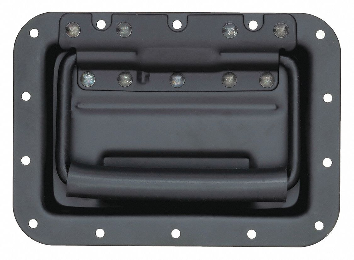 Monroe Steel Recessed Pull Handle, Spring Loaded Rectangular Grip, Dull Black Finish, 7" Mounting Hole Center to Center, 21/32" Projection, Black Color (Pack of 1)