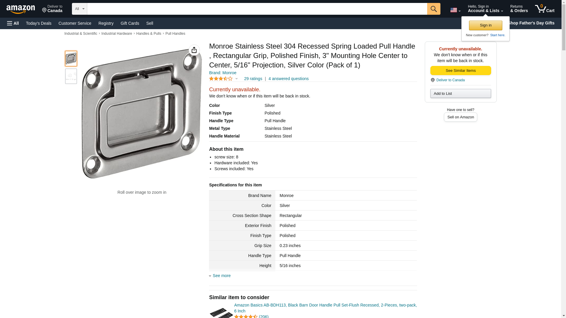 Monroe Stainless Steel 304 Recessed Spring Loaded Pull Handle , Rectangular Grip, Polished Finish, 3" Mounting Hole Center to Center, 5/16" Projection, Silver Color (Pack of 1)