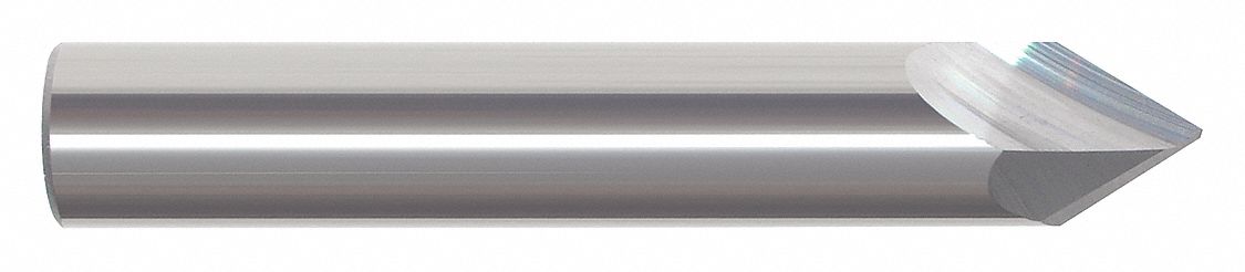 - <b>Price For:</b> Each <b>Shank Type</b>: Straight <b>Non Ferrous (N) Compatibility</b>: No <b>End Mill Cutting Type</b>: Center Cutting <b>Grade</b>: General Purpose <b>End Mill Style</b>: Chamfer Mill <b>Chamfer Angle</b>: 60 Degrees <b>Hardened (H) Compatibility</b>: No <b>Cutter Dia.</b>: 1/2" <b>End Mill Application</b>: Finishing <b>Material</b>: Carbide <b>Shank Dia.</b>: 1/2" <b>Super Alloy (S) Compatibility</b>: No <b>Length of Cut</b>: 3/8"
