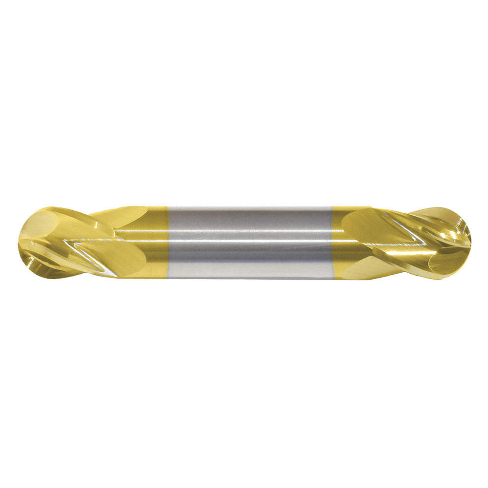 - <b>Price For:</b> Each <b>Stainless (M) Compatibility</b>: No <b>Dimension Type</b>: Fractional Inch <b>End Mill Style</b>: Ball Nose <b>Single End/Double End</b>: Single End <b>Cutting Direction</b>: Right Hand <b>Super Alloy (S) Compatibility</b>: No <b>Finish</b>: Tin <b>Item</b>: Ball End Mill <b>End Mill Material</b>: Carbide <b>Overall Length</b>: 2" <b>List Number</b>: 220 <b>Helix Angle</b>: 30 Degrees <b>Length of Cut</b>: 1/2" <b>Pitch</b>: Equal
