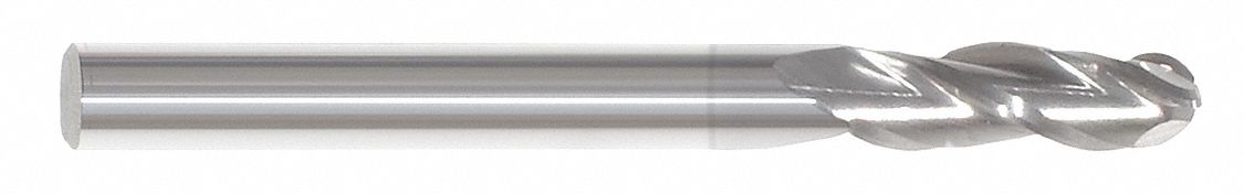 - <b>Length of Cut</b>: 1" <b>Stainless (M) Compatibility</b>: No <b>Single End/Double End</b>: Single End <b>Milling Diameter</b>: 7/16" <b>Number of Flutes</b>: 3 <b>Grade</b>: General Purpose <b>Overall Length</b>: 2-3/4" <b>Shank Dia.</b>: 7/16" <b>Cast Iron (K) Compatibility</b>: No <b>Non Ferrous (N) Compatibility</b>: No <b>Hardened (H) Compatibility</b>: No <b>Helix Angle</b>: 30 Degrees <b>End Mill Style</b>: Ball Nose <b>Neck Length</b>: 0.0000" <b>Neck Dia.</b>: 0.0000"