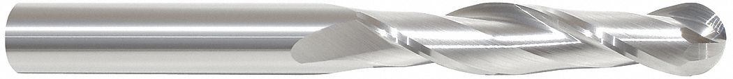 Carbide End Mill, 3/8" Shank Diameter, 2 Flute, Single, 3", Ball nose End Style
