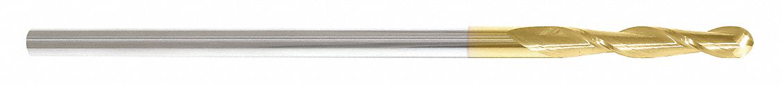 'Ball End Mill, 3/8 In. Milling Dia., Carbide, TiN, Non-Coolant Through'