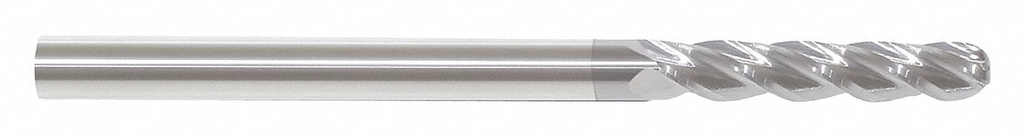 - <b>Price For:</b> Each <b>Item</b>: Ball End Mill <b>Number of Flutes</b>: 4 <b>End Mill Material</b>: Carbide <b>Dimension Type</b>: Fractional Inch <b>End Mill Cutting Type</b>: Center Cutting <b>End Mill Style</b>: Ball Nose <b>Helix Angle</b>: 30 Degrees <b>End Mill Application</b>: Roughing/Finishing <b>Pitch</b>: Equal <b>Grade</b>: General Purpose <b>Cutting Direction</b>: Right Hand <b>Milling Diameter</b>: 3/8" <b>Shank Dia.</b>: 3/8"