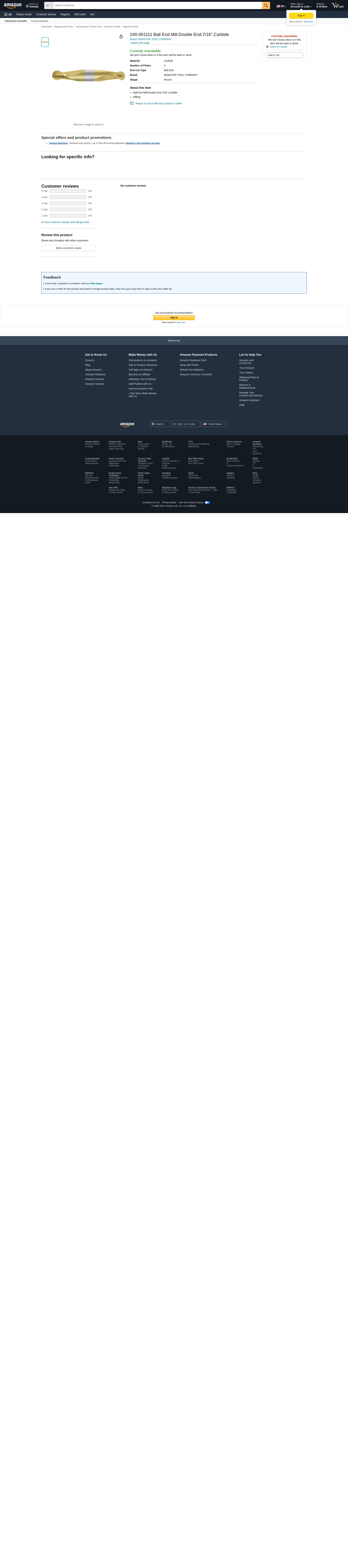 MONSTER TOOL COMPANY 240-001111 Ball End Mill,Double End,7/16",Carbide