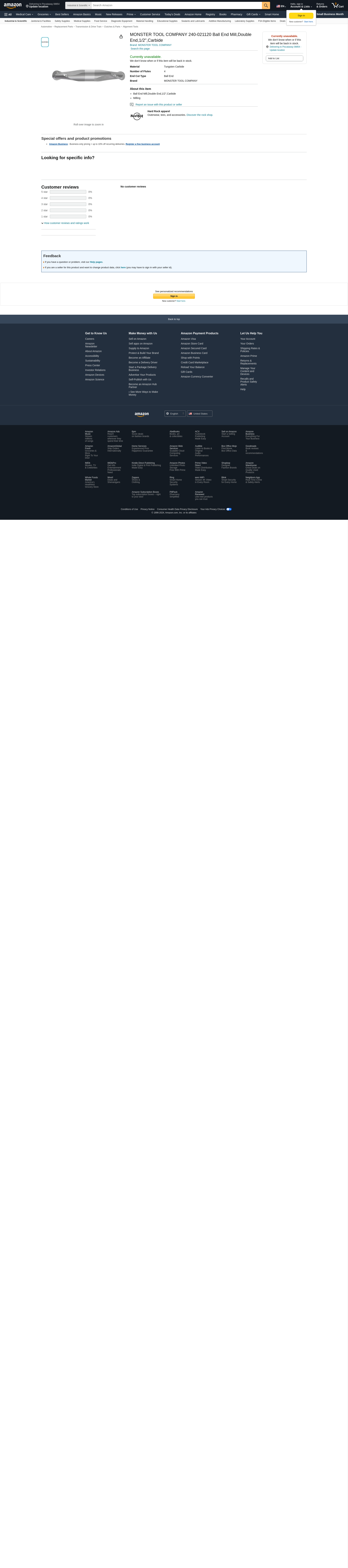 MONSTER TOOL COMPANY 240-021120 Ball End Mill,Double End,1/2",Carbide