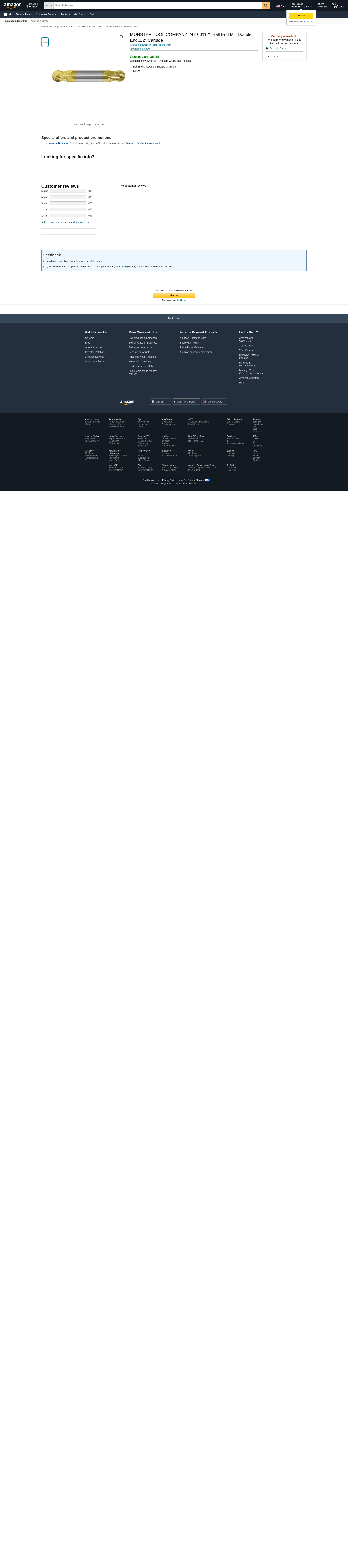 MONSTER TOOL COMPANY 242-001121 Ball End Mill,Double End,1/2",Carbide