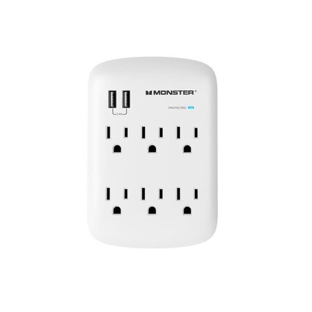 Monster 3001089 Just Power it Up 1200J 6 Outlets Wall Tap Design Surge Protector