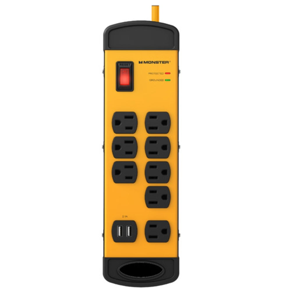 Highlights: Color: Black Wattage: 1875 watts Voltage: 125 volt Amps: 15 amps Joules: 1080 J Cord Length: 15' Number of Outlets: 8 outlets Metal Power Strip: Yes ETL Listed: Yes Low Profile Plug: No UL Listed: No Indoor or Outdoor: Indoor 8 Outlets 2 USB with a 15' Cord Features 1080 Joules of protection and has 2 USB o