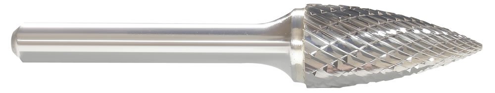 - <b>Price For:</b> Each <b>Cutter Dia.</b>: 1/4" <b>Item</b>: Carbide Bur <b>Shape</b>: Pointed Tree <b>Shank Material</b>: Carbide <b>Length of Cut</b>: 5/8" <b>Shank Size</b>: 1/4" <b>Cutting Edge Type</b>: Double Cut <b>Trade Number</b>: SG-1 <b>Overall Length</b>: 2" <b>Type</b>: Double Cut <b>Country of Origin (subject to change)</b>: United States
