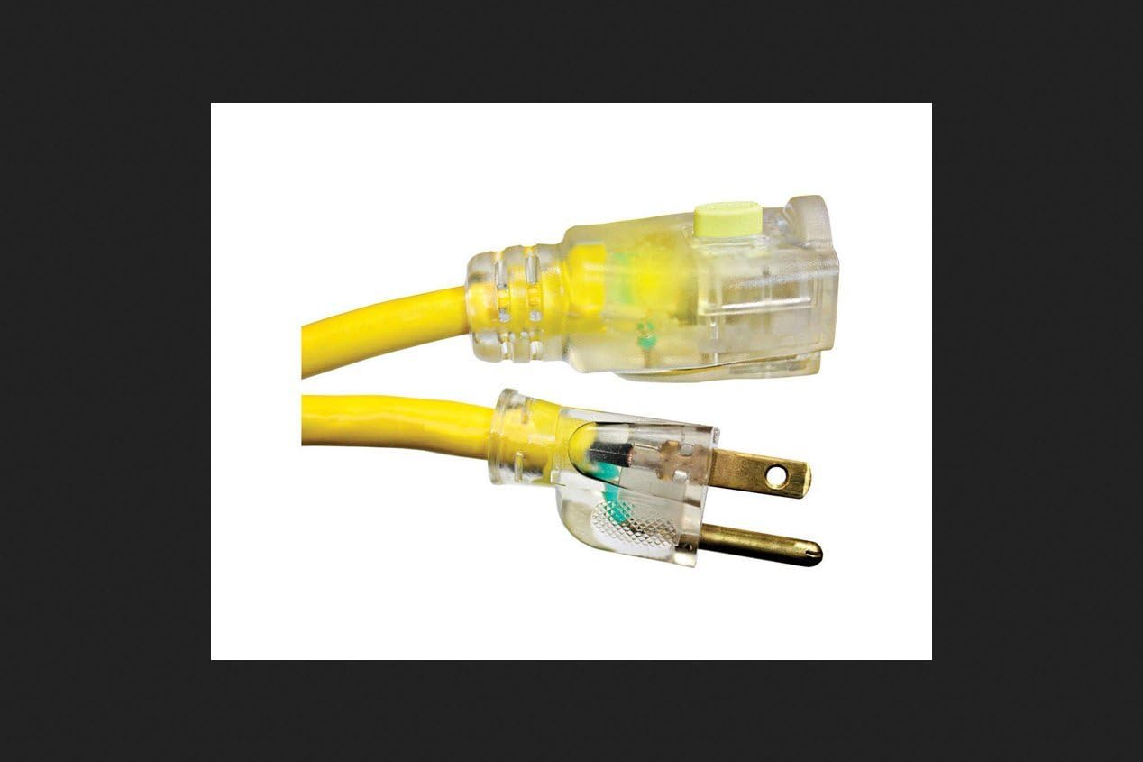 EXTENSION CORD100'12/3YLW "MONSTER" EXTENSION CORD Yellow 100 ft. length 12/3 SJTW Medium duty extension cord for use with power tools Lighted locking end power indicator UL approved Discovery SUP