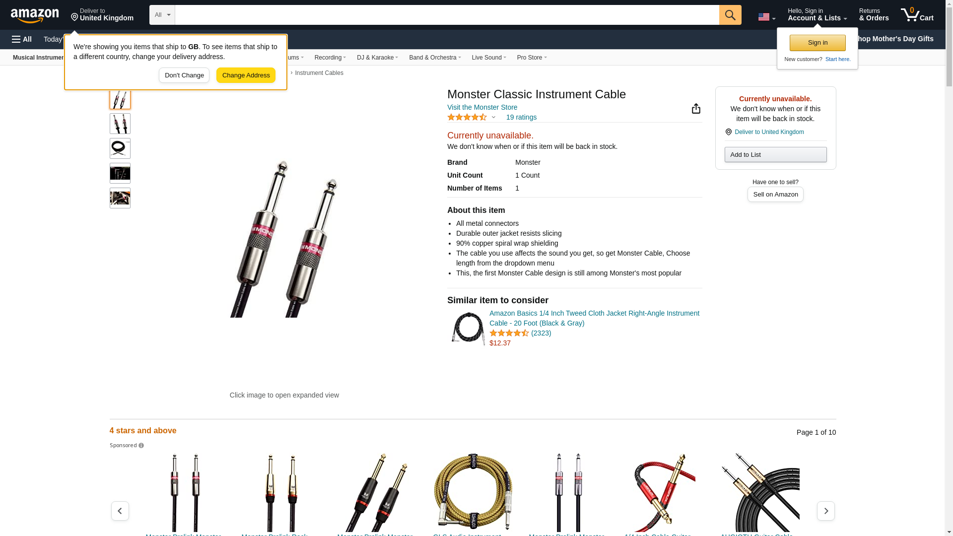 - The cable you use affects the sound you get, so get Monster Cable, Choose length from the dropdown menu