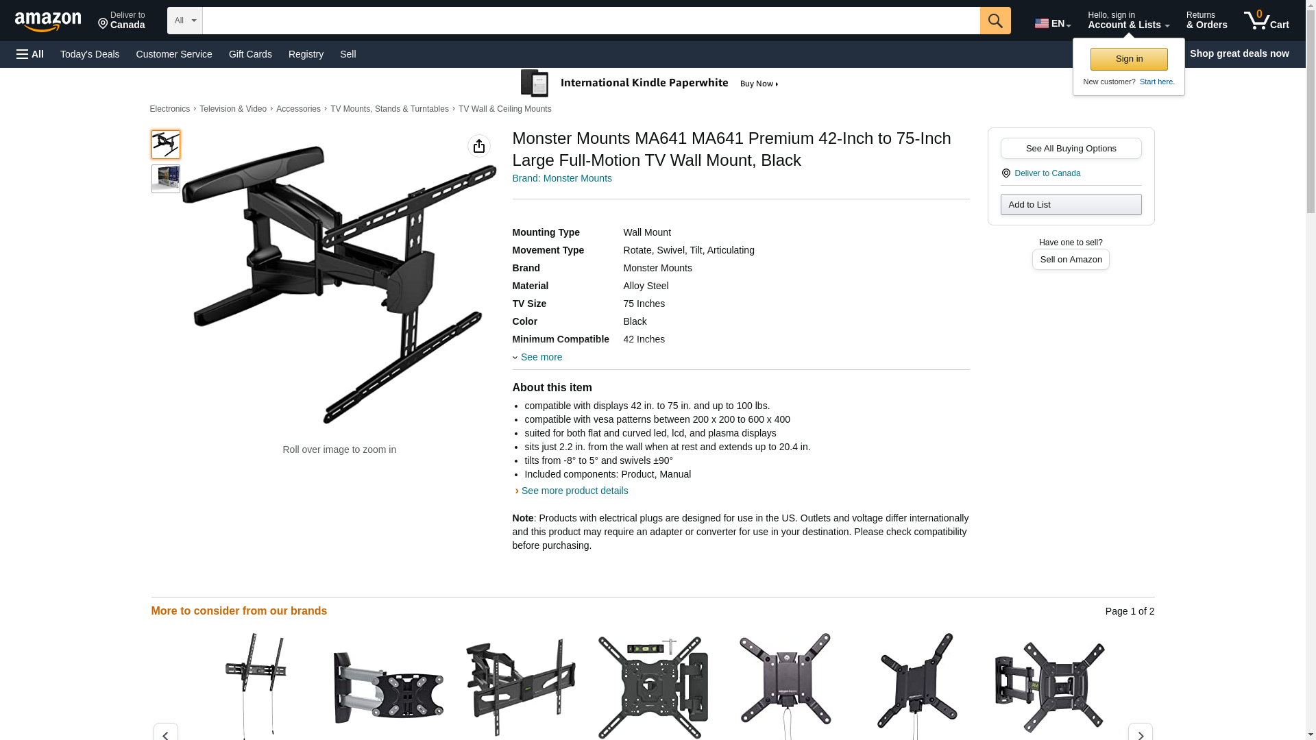 | Feature | Monster Mounts MA641 42"-75" Full-Motion Flat Panel Mount |