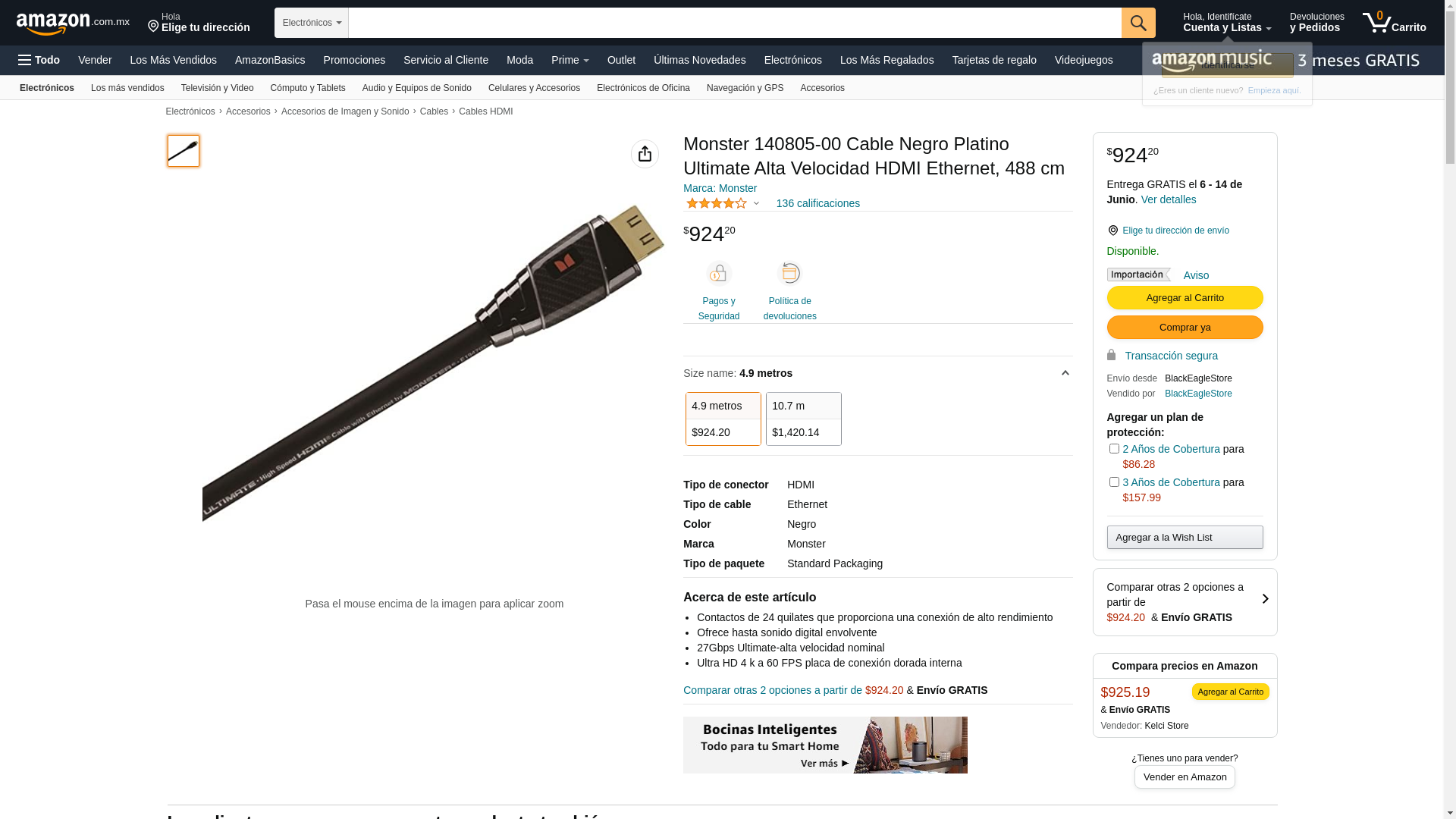 Monster Black Platinum Ultra HD HighSpeed HDMI Cable with Ethernet - 16 ft.