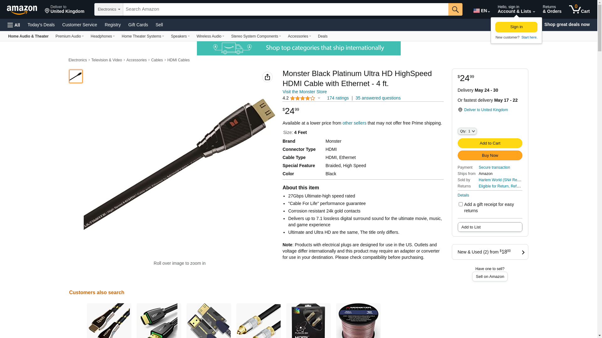 Monster Black Platinum Ultra HD HighSpeed HDMI Cable with Ethernet - 4 ft.