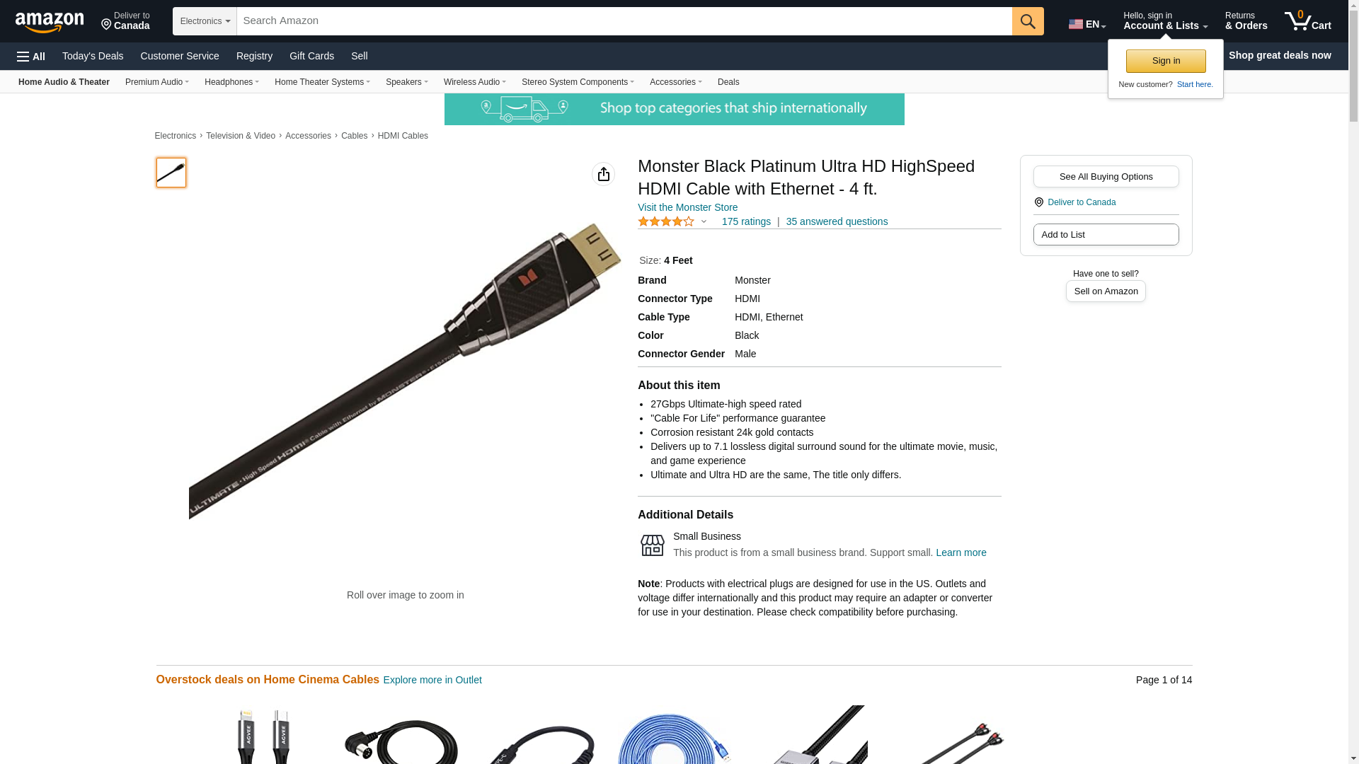 Monster Black Platinum Ultra HD HighSpeed HDMI Cable with Ethernet - 8 ft