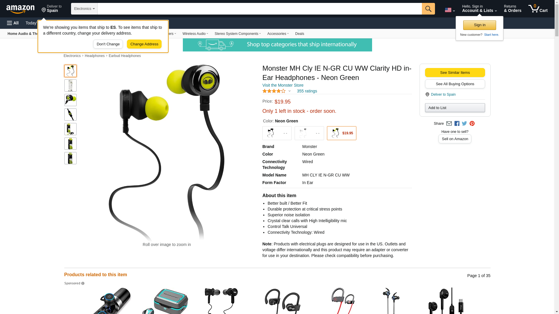 Monster MH Cly IE N-GR CU WW Clarity HD in-Ear Headphones - Neon Green