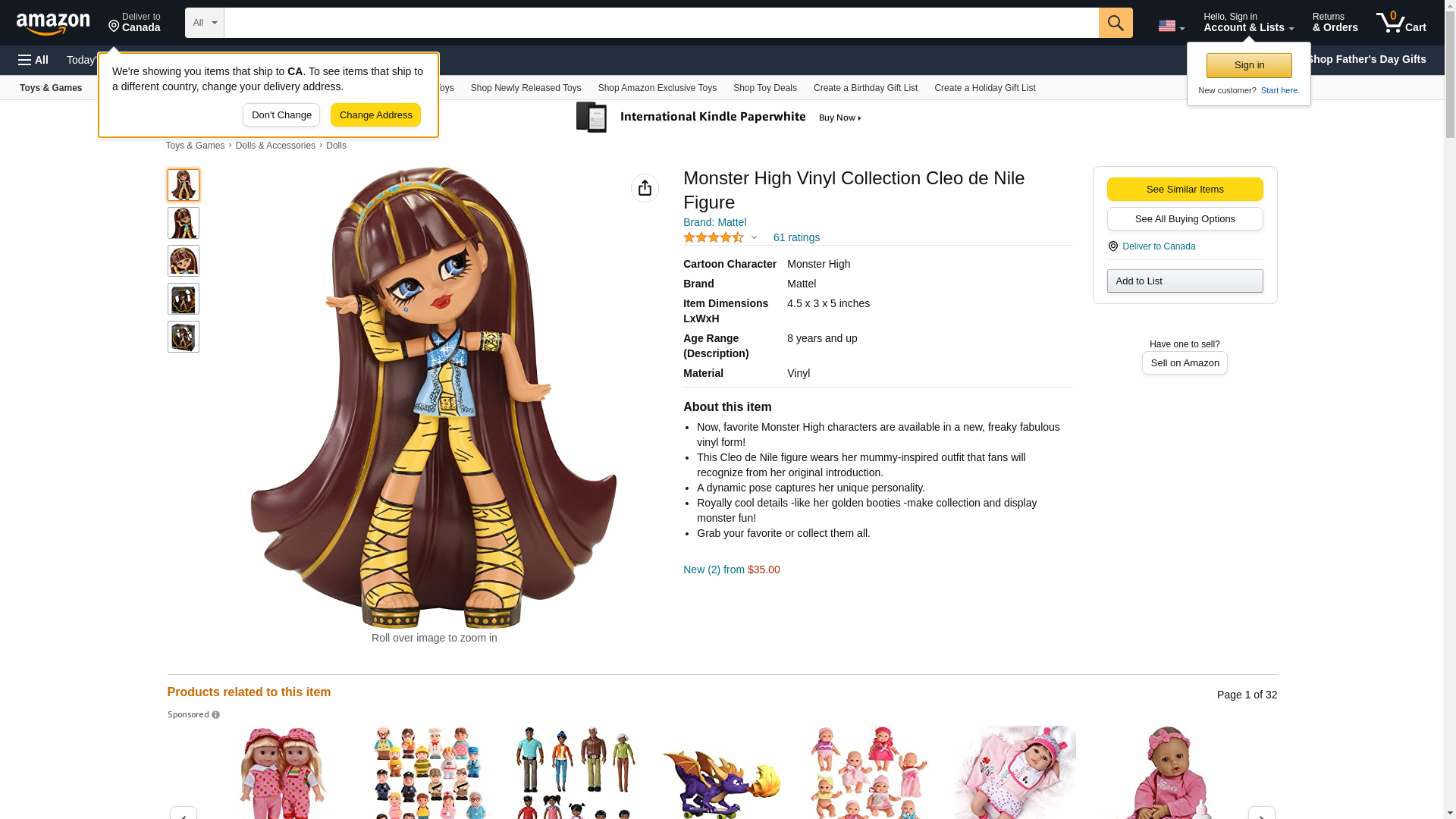 <b>Monster High Cleo De Nile Vinyl Figures:</b> <ul> <li>Age Range: 8Y+</li> <li>Now, favorite Monster High characters are available in a new, freaky fabulous vinyl form!</li> <li>This Cleo de Nile figure wears her mummy-inspired outfit that fans will recognize from her original introduction</li> <li>A dynamic pose captures her unique personality</li> <li>Royally cool details -like her golden booties -make collection and display monster fun!</li> <li>Grab your favorite or collect them all</li> </ul>