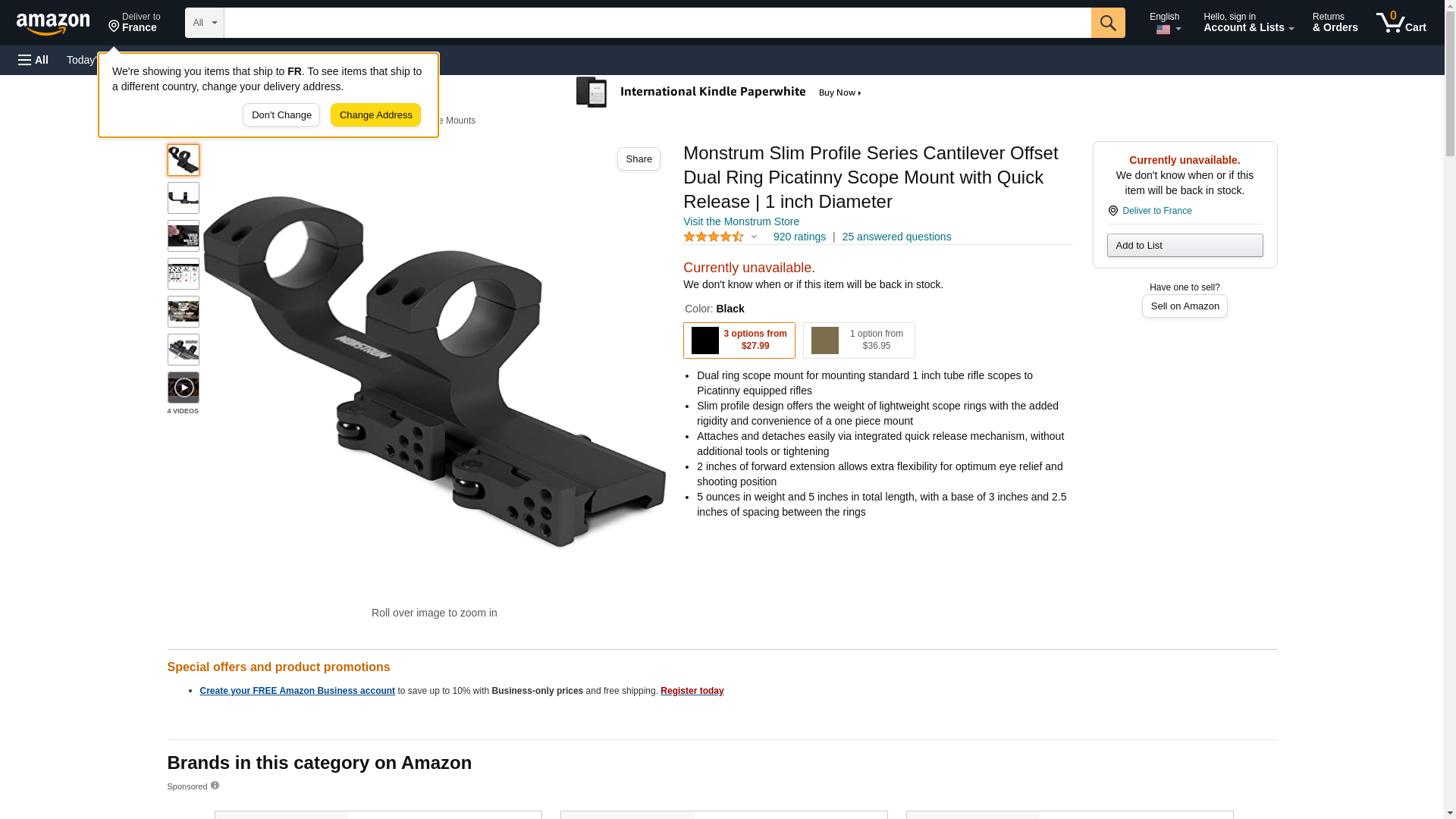 Monstrum Slim Profile Series Offset Dual Ring Picatinny Scope Mount, 1in ZR252-Q-B |