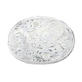 Montana Silversmiths Oval Silver Engraved Western Belt Buckle With Etched Trim