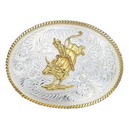 Montana Silversmiths Large Silver Engraved Western Belt Buckle With Bull Rider